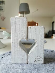 Prodám svicny na čajovou svíčku, dřevo, patina, ruční výroba. Tvoří vedle sebe srdce. Nejlépe osobní předání. Inzerát platný do smazání!