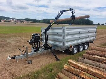 Třístranný sklápěcí přívěs s lesnickou rukou Vahva Jussi 400 univerzální řešení pro lesnictví, rizikové kácení i rozvoz palivového dřeva. Robustní konstrukce s žárově zinkovaným rámem a zesílenou ojí pro montáž lesnické ruky. Přívěs umožňuje efektivní manipulaci s kmeny i sypkým materiálem díky výkonné elektrohydraulice s dálkovým ovládáním. Zesílená korba s ocelovou podlahou, třemi sklápěcími stranami, odnímatelnými bočnicemi a možností vytvoření plata. Lesnická ruka Vahva Jussi 400 s dosahem 4 m a drapákem 750 mm, poháněná benzínovým motorem Honda GX200, nabízí zvedací sílu až 530 kg. Výborné jízdní vlastnosti díky nápravám 3×1350 kg a nízkému těžišti. Včetně opěrných patek, zakládacích klínů a schválení pro silniční provoz se zápisem ruky do TP. Rok a měsíc výroby: 01.01.2025 Karoserie: Sklápěč Barva: Šedá Země původu: Česká republika Výbava: Kotvící oka, Opěrné nohy, S couvacím světlem, Vidlice 13-pol, Zakládací klíny, Brzděný, Opěrné kolečko, Zadní mlhovka