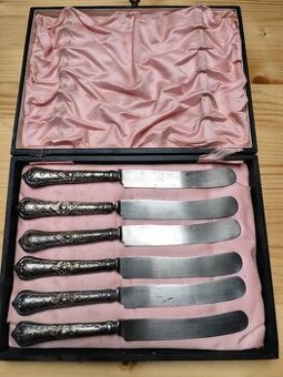 Prodám starožitné stříbrné dezertní nože v etuji