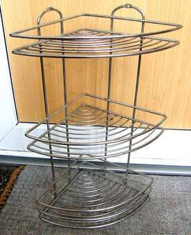 Rohová drátěná police, může stát na zemi i být upevněná na zdi. Bytelná, celkově v dobrém stavu, pouze menší kosmetické vady. rozměry: 46x21 cm Ideálně osobní předání v Rokycanech a okolí, ale mohu i poslat. V případě zájmu prosím nevolejte, ale jen napište zprávu přes Bazoš.