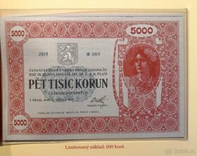 5000 korun 1919-2019 vzacne vydani. Cislo 089