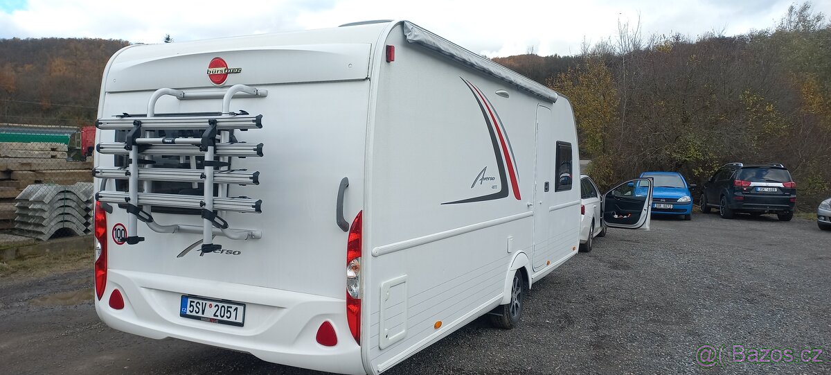 Prodám rodinný karavan Bürstner Averso 465TS, r.v. 2015, spaní pro 4 osoby, STK do 6/2027, velmi dobrý stav a kvalitní zpracování interiéru. Hmotnost: 1245 kg Rozměry: D 728 cm (s ojí), Š 230 cm, V 260 cm Výbava: el. podlahové topení, velká koupelna s oddělitelným sprchovým koutem, 2× šatní skříň, vařič, lednice, topení Truma, bojler, 50 l nádrž atd. Doplňky: nafukovací předstan německé značky Westfield Vega, markýza Fiamma, nosič kol Thule (4), TV, baterie, zimní plachta HTD, zámek oje,vchodový schůdek, krycí matrace na rozkládací lůžko (140 cm), sušák s připevněním na oji Vvíce info po telefonu.