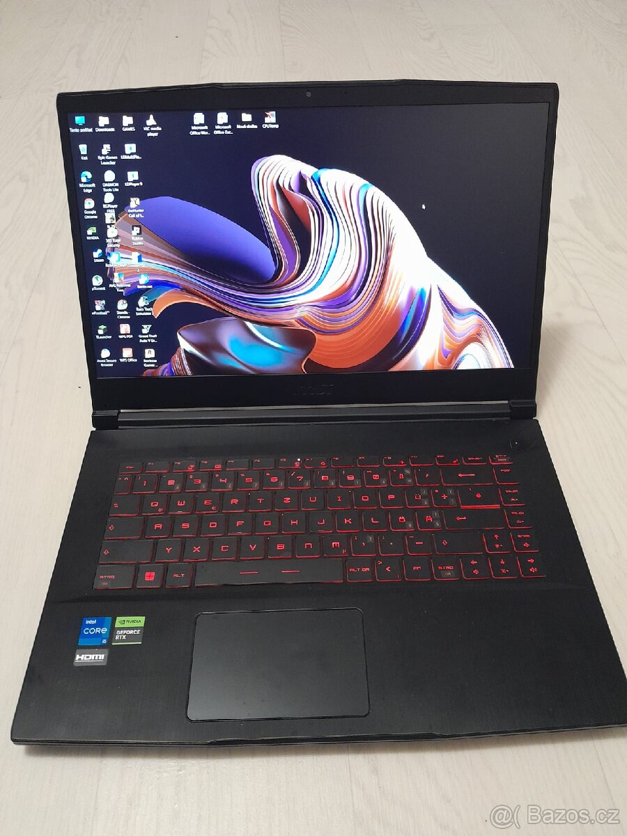 Herní notebook MSI GF63 Thin - ZÁRUKA 11 měsíců| 15,6" 144Hz | Intel Core i5-12450H | RTX 4050 6GB | 16GB | 512 SSD | WIN11. Možný osobní odběr i zaslání poštou po domluvě na čísle 737 124 977 Nabíječka v ceně a myš přidám za 300kč