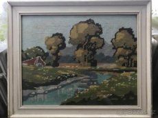 Je ručně vyšívaný Obraz je bez známek poškození Rozměr: šířka 55cm, výška 47cm Při rychlém jednání sleva