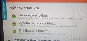 Cena: V textu. Prodám úplně novou vzduchovku GAMO MAGNUM JUNGLE ráže6.35mm,45J.Nemám na ni sílu.Při nabíjení je potřeba pořádně zabrat.Střelba samotná je skvělá.Pův.cena 7.500.Chci 6.500