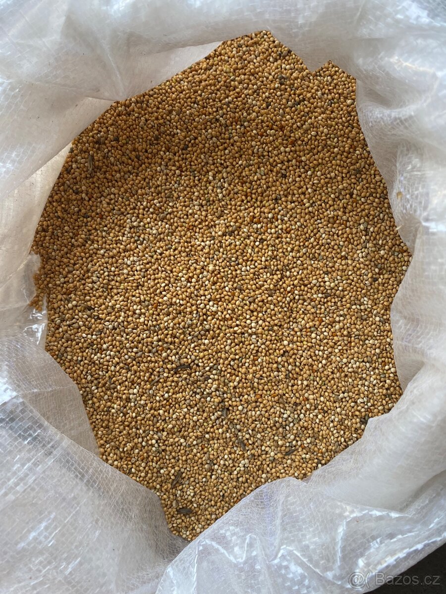 Prodám proso sušené, čištěné. ŽLUTÉ, ČERVENÉ 15 Kč. ZELENÉ 16 Kč za 1 kg.