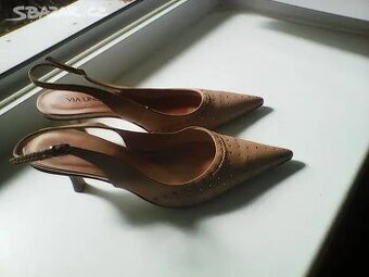 Nové nenošené letní sandálky na pohodlném podpatku, barva camel, v.40, cena jen 500 Kč