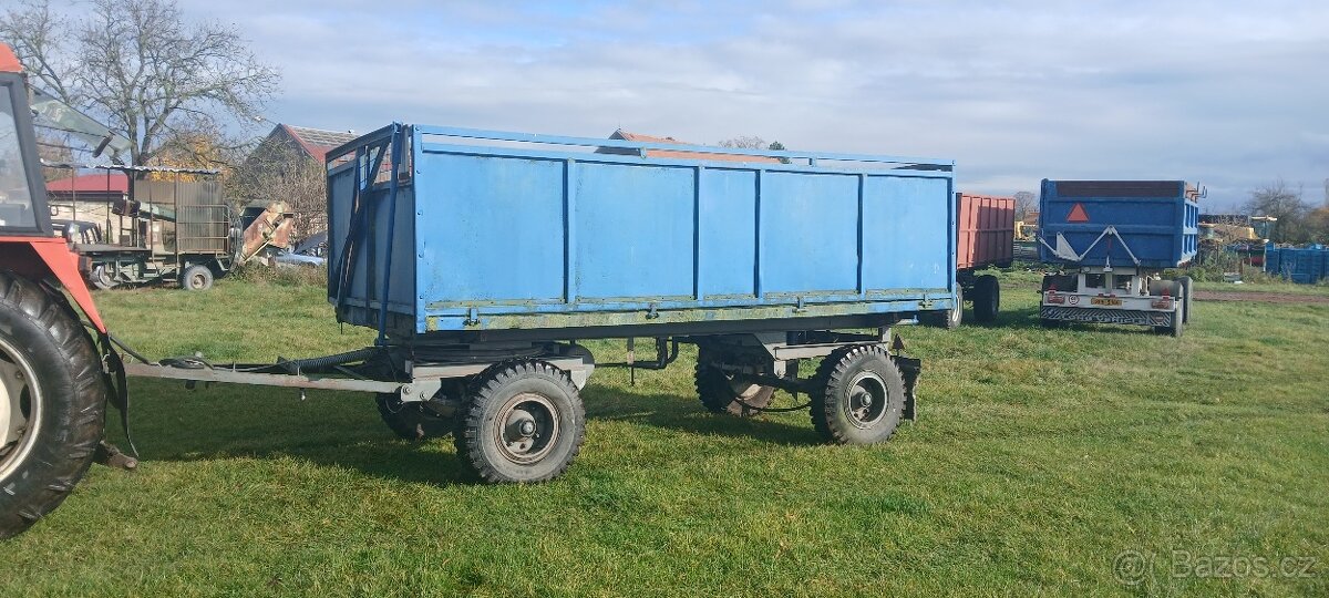 Traktorový sklápěcí přívěs, upravený k převozu siláže. Mnoho let nevyužívaný, bez TP Nosnost 7 tun Funkční stav - sklápí, nutná oprava elektroinstalace.