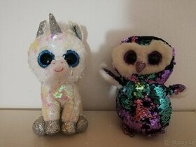 Prodám plyšáky s flitry zn. Ty. Nevyužiti, neposkození, cena za oba. Sova 17cm, jednorožec 18cm.