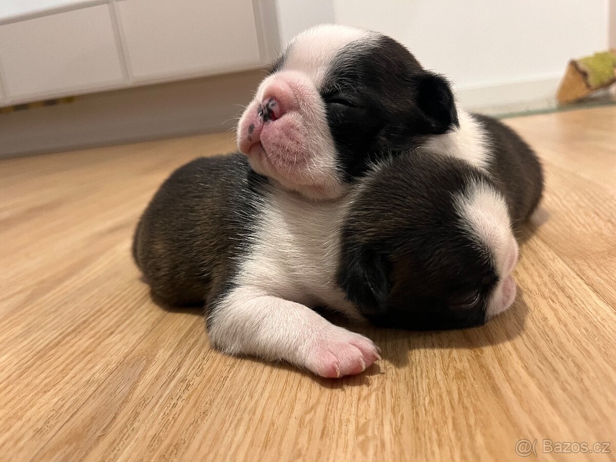 Bostonský teriér – štěně s PP (FCI) 🐾 Chovatelská stanice: Stanice Vozerovice Hledáme milující domov pro štěně bostonského teriéra s průkazem původu (FCI) –1 fenku. 📅 Datum narození: 10. 1. 2026 🏡 Odběr možný: od 8. týdne věku 🐶 Rodiče: Otec: Gold Gelb Box Vito CMKU/BOS/5945/22/21 Juniorchampion Srbska, Maďarska Klubový šampion, Klubový vítěz 2024, Český šampion Matka: Brigitte Bardot Super Albea CMKU/BOS/4758/20 Štěňata vyrůstají v domácím prostředí, jsou zvyklá na běžný chod domácnosti a kontakt s lidmi. Do nových domovů půjdou: • řádně odčervená • očkovaná a čipovaná • s průkazem původu (PP – FCI) • očkovacím průkazem • kupní smlouvou Budeme rádi když se ozvete na telefon 605707023 Dvořáková Aneta