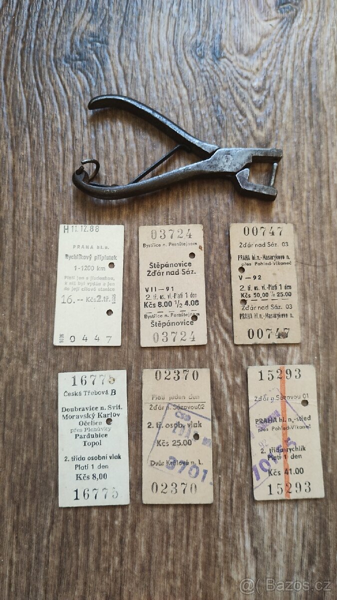 Kleště nejspíš pro průvodčí k označení jízdenky,dírka přesně odpovídá .Délka cca 9,5 cm.Stav dle foto.A 6 kusů jízdenek na vlaky, před rokem 1989.Cena bez dopravy,Zásilkovny.Po Praze lze po dohodě vyzvednout v prodejně na metru C Ládví Po-pá 13 -19h víkendy zavřeno