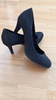 Prodám nevyužité lodičky, černé se třpytky, podpatek 8,5 cm, zn. Lazzarini, stabilní, vhodné na užší nohu. Slušivé jak na ples, tak běžně k sukni nebo i ke kalhotám. Zcela v pořádku. Možné prohlédnout a vyzkoušet v Praze, blízko metra Skalka, nebo pošlu přes Zásilkovnu po platbě předem na účet vč. poštovného a balného. Cena 300 Kč.