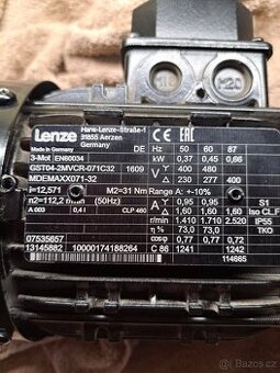 Prodám elektromotor LENZE s přímou převodovkou nepoužitý. Technícké parametry na štítku. Výstupní hřídel průměr 20mm.