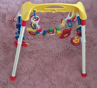 Prodávám veselou kojeneckou hrazdičku se závěsnými chrastícími hračkami, vhodnou pro miminka od 2 měsíců. Je stabilní s protiskluznými nožkami a ve velmi pěkném stavu. Obsahuje medvídka s plovacím kruhem, lodičku, zrcátko, medvídka se srdíčkem (po stisknutí hraje a barevně bliká), závěsné kroužky. Místo prostředního klauna vyfoceného na krabici je součástí chrastítko s klaunem, které lze libovolně přemisťovat. Veškeré příslušenství vyfoceno viz přiložené fotografie. Rozměry v sestaveném stavu: 60 x 60 x 50 cm (délka x šířka x výška). Rozměry krabice: 55 x 28 x 8 cm. Vzhledem k velikosti krabice nad 50 cm je možné pouze osobní převzetí v Plzni.
