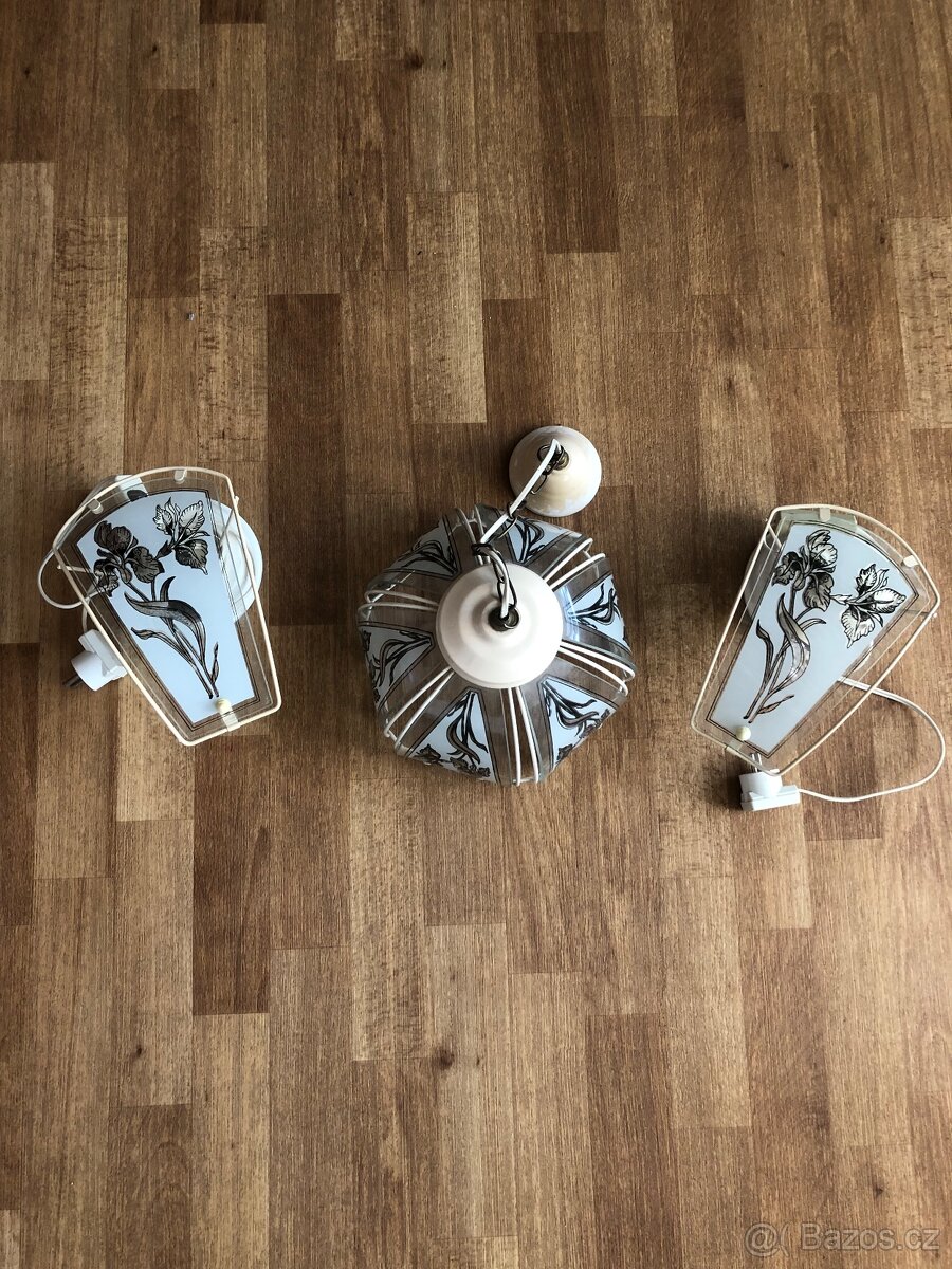 Prodám lustr a dvě závěsná světla na zeď .