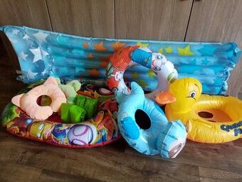 Dobrý den, prodám nafukovací hračky do vody. Jedná se o nafukovací rukávky, lehátko, dětskou kachnu, člun, dva kruhy a polštáře za hlavu. Nutno vlastní odvoz.