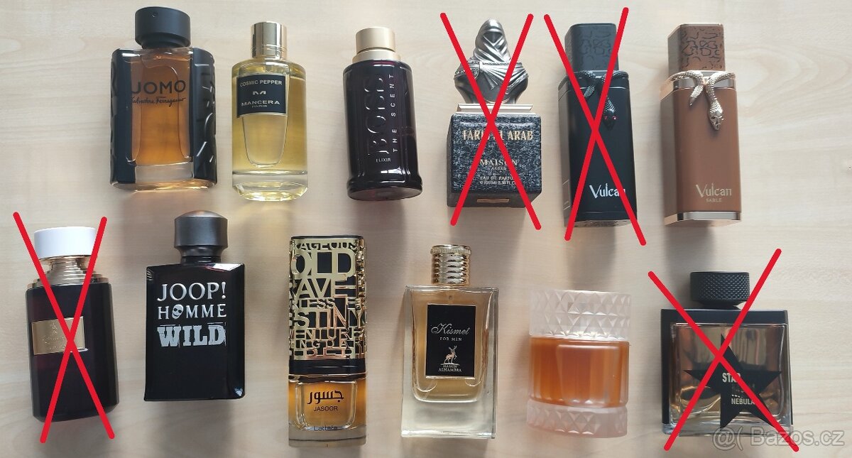 Cena: V textu. Prodám několik vůní ze své sbírky. Většina je plná tak z 95 - 100%. Předání buď osobně v Brně nebo poslání skrze Zásilkovnu. Při koupi více kusů je možné se domluvit na slevě. Hugo boss the scent elixir for him 100ml 1300Kč Kismet for Men Maison Alhambra 100ml 250Kč Sharaf Divine Zimaya 100ml 400Kč Jasoor Lattafa Perfumes 100ml 400Kč Cosmic Pepper Mancera 120ml 1300Kč Joop! Homme Wild 100ml 250Kč Vulcan Sable French Avenue 100ml 500Kč Salvatore Ferragamo Uomo EDT 100ml 550Kč