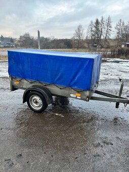 Prodám zachovaly přívěsný vozík značky Agados S konstrukci, plachtou a opěrným kolečkem STK 10/29
