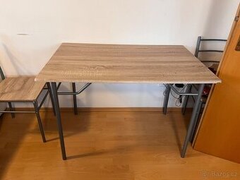 Prodám jídelní stůl, někde je trošku poničený (viz foto). Výška 74, délka 110, šířka 70. Prodám za 300,-. Osobní odběr Hradec Králové.