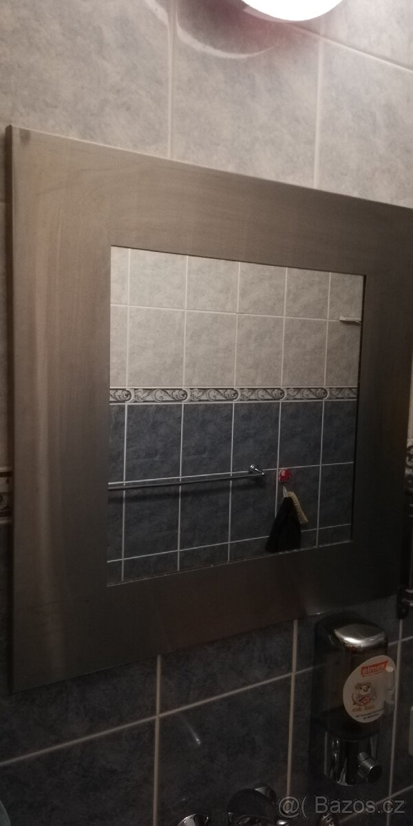 Prodám zrcadlo (třeba do koupelny či chodby...) matný chrom, pěkné. Rozměry celkem 55cmx55cm, rozměry zrcadla 35cmx35cm. (jen osobní odběr)