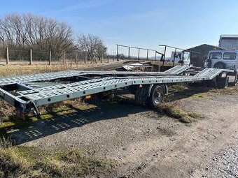 Celková délka: 12 500 mm Šířka: 2 350 mm Největší technicky přípustná hmotnost: 5 500 kg Barva: šedá - základní Pneumatiky: 215/75R17,5 Náhradní kolo. Po dohodě lze dokoupit další kola, pneumatiky a nájezdy. Pevný rám českého výrobce, který se neprohýbá a nepraská jako hliníkové návěsy Celokovová konstrukce s lehce a levně vyměnitelnými díly Určeno až pro 3 osobní vozidla, případně 2 dodávky Elektrický naviják s dálkovým ovladačem Jednoosý ABS Kvalitní náprava na měchách Vzduchový podvozek - rychlospojky vzduchu a zásuvky - vše standart Výborný nájezdový úhel Nastavitelná výška nakládky Tuhost pérování Nová STK při prodeji Možnost koupě i s tahačem za celkovou cenu 640 000 Kč, nebo 26 500 Euro