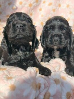 Cena: V textu. Od půlky března k dispozici štěňátka anglického kokršpaněla zlatý pejsek černý a černé fenky Naočkování označení čipem pravidelně odčervení po prohlídce veterinářem vyrůstající v domácím prostředí, rodiče k vidění,bez zdravotnich problémů,vážní zájemci, pouze volat Pejsci 8 tis fenky 13
