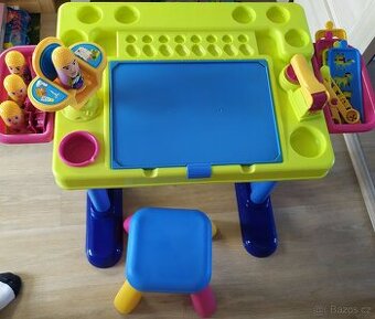 Prodám hrací stolek s židličkou a příslušenstvím. Plastelínu jsme vypotřebovali tak není...předání nejlépe osobně (Frýdek-Místek nebo Ostrava)
