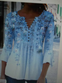 Prodám novou, nenošenou, dámskou halenku. Barva: vodní modrá s květinovým vzorem. Velikost: M Původní cena 669.-, nyní 250.-