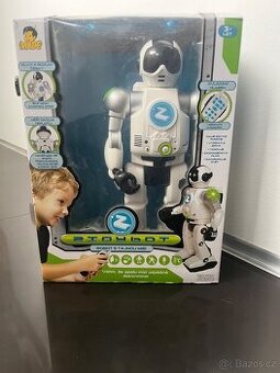 Prodám robota Zigyho na baterky.Ovládá se pomocí dálkového ovladače nebo hlasem, měří okolní teplotu, vypráví, zpiva a tancuje, reaguje na otázky v češtině.Je s ním skvělá zábava.