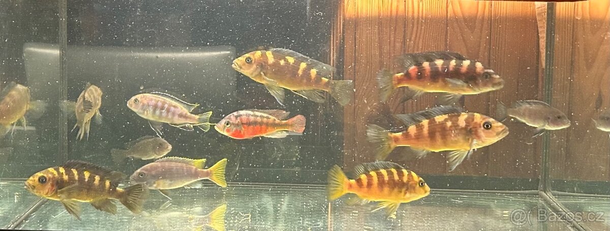 Cena: V textu. Prodám akvarijní ryby malawi 11kusů vel.10cm cena 50kč za kus.
