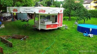 Karavan má svůj vlastní výčep (dva výčepy naproti sobě). Tři prodejní pulty. Přípojka voda,EL 220 Vhodný na velké i menší akce. Zakoupeno od Haineken v roku 2018. Při rychlém jednání sleva.