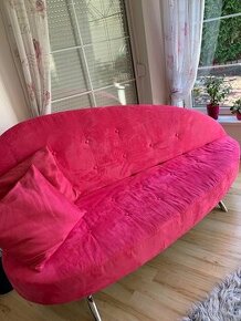 Sedačka rozkládací ve tvaru srdce, růžové barvy vhodná do dětského pokoje, salonu. Dobrý stav!
