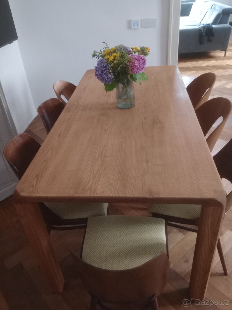 Jídelní stůl z dubového dřeva deska slepená z masivu síla desky 42mm deska použita bez lubů k lepšímu designu stolu nohy jsou plny dubový hranol rozměr 8x8cm výška stolu je 76,5 cm výška pod horní spodní hranu desky 72,3 cm povrchová úprava volitelná buď lak nebo voskoolej cena za vyobrazený kus moření ořech rozměr 180x90 cm po dohodě můžeme zhotovit jiný rozměr o maximální šířce 100 cm a délce 220 cm jedná se o velmi povedený jídelní stůl který, bude srdcem vašeho domova restauce či hotelu nebo penzionu