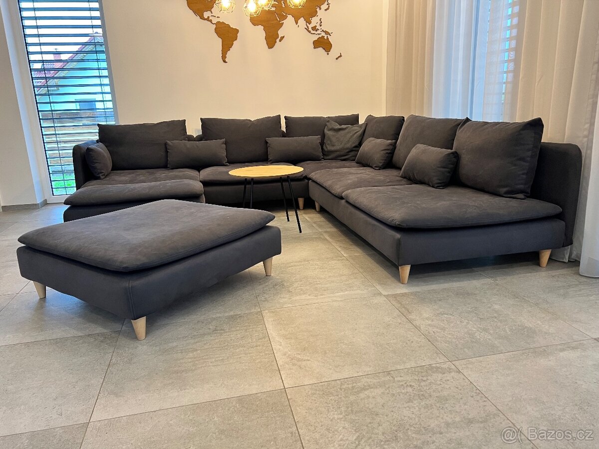Prodám málo používanou sedací soupravu pořízenou IKEA typ SÖDERHAMN. Včetně polštářů a taburetu viz foto. K sedačce jsou náhradní nohy ( dřevěné + ocelové )