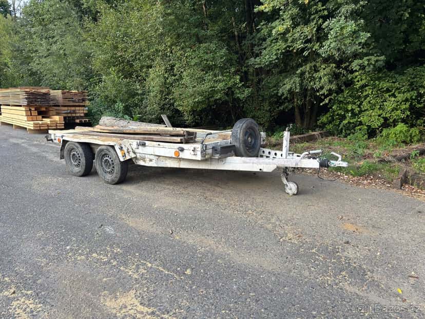 Prodám tento nákladní přívěs Podval ideální na bagr, velmi robustní Dávám k němu jasanové nájezdy Stk do 06 2027 Nosnost 3 000 kg