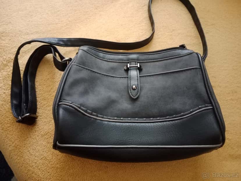 Přes rameno, navrchu kapsa na patent, uvnitř 1 kapsička na zip a 2 další. Minimálně nošená. Šířka 23, výška 18, hloubka 7.