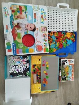 Téměř nepoužitá sensory dráha, magnetická tabulka (top stav), magnetky na lednici (top stav), kufřík ke šroubování, puzzle. Ideálně vše dohromady