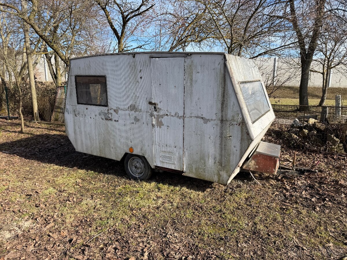 Starší karavan bez TP. Uvnitř suchý. Možno použít jako sklad na stavbu nebo pro rybáře či dělníky. Obytný přívěs vozík vlek bydlík