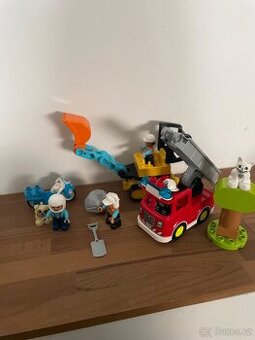 Policejni motorka plus panacek a pejsek, bagrista plus panacek, lopata a hasicske auto plus panacek a strom s kockou, odber Praha nebo Ricany nebo poslu
