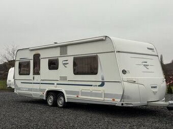 EVIDENČNÍ ČÍSLO:2386 Nabízím nádherný a prostorný dvouosý karavan/obytný přívěs značky Fendt Diamant 620 TF v originálním stavu bez předělávek atd. jak to bohužel u nich býva... VÝBAVA: Střešní klimatizace s režimy topení/chlazení/ventilace Sáčková markýza Thule Omnistor Koupelna s kazetovým WC, umyvadlo, zrcadlo, skříňky Prostorná ložnice s velkou postelí+úložné prostory, kterou lze oddělit posuvnými dveřmi,velká šatní skříň Velká jídelní souprava tvar U s možností rozložení na postel pro 2 osoby Kuchyň s velkou lednicí a velkým mrazákem /trojkombinace/nerezový dřez a sporák na PB,digestoř, ovládací panel pro teplou vodu, plynová trouba Rozvod elektřiny 12V /220V Bojler pro teplou vodu Truma 220V Nádrž na čistou vodu s čerpadlem na 12V Plynové topení Trumatic s rozfukem+elektrický krb Krásně osvětlený interiér Bezpečnostní závěsné zařízení Klíč na podpěrné nohy Nový přípojný kabel do sítě 220V 4místa na spaní Zatemňovací roletky+sítě proti hmyzu ve všech oknech TECHNICKÉ ÚDAJE: R