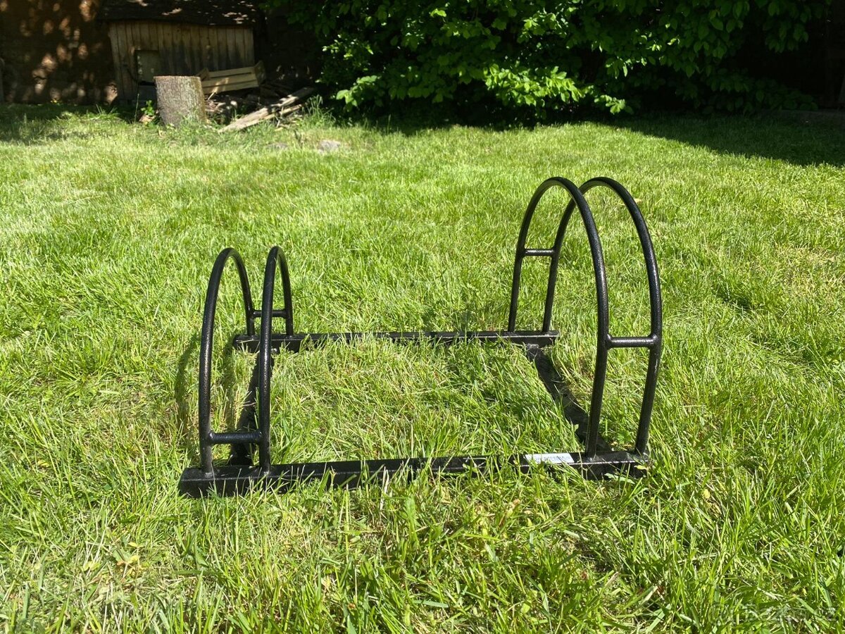Stojan na 2 kola. Rozpeti 5cm u dvou uchytu, mezi tím je místo zhruba 40cm.