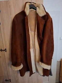 Stav: nošený, 90% stav, bez knoflíků. Materiál: kůže, vlna Barva: béžová Rozměry: 4XL, délka 97cm, šířka dole 70cm, šířka ramena 53cm, šířka pod rameny 56cm, rukávy 70cm, 4 dírky na knoflíky.