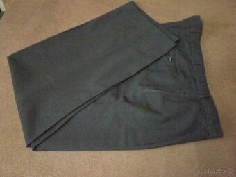 Kónig - společenské kalhoty velikost XXL. Zapínají se pomocí zipu, knoflíku a háčku, pasovka má osm poutek na opasek, 2x boční kapsa,1x zadní kapsa. Obvod pasu 110 cm, délka 110 cm. Velmi málo nošené. Při koupi dvou položek z mé nabídky získáte na tu dražší 10% slevu.
