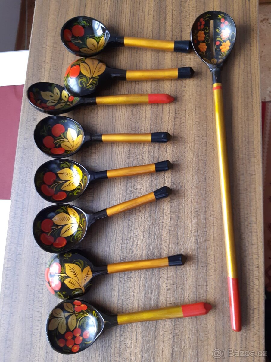 prodám 9 ks dřevěných lžiček 8 ks délka 19cm a 1 ks délka 42 cm. Cena 190 Kč.