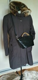 nošený,ale krásný kvalitní zimní kabát lemy z umělé kvalitní kožešiny, v pase se dá stáhnout, zip a knoflíky na zapínání,vysoký límec,barva hnědo šedá,vel. L, prsa 52cm, pas 48cm, boky 59cm, délka 88cm
