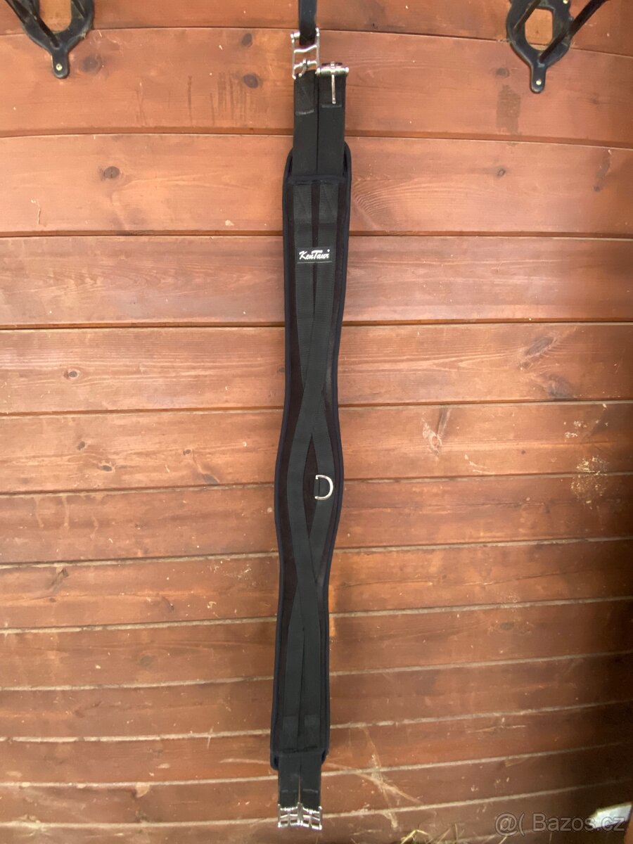 Prodám podbřišník s gelem, gumy na obou stranách, značka Kentaur. Velikost psaná 120cm, ale spíše 115cm. Proto prakticky nepoužitý, potřebovali jsme delší. Jinak skvělý podbřišník i pro citlivé koně. Původní cena cca 1600,- Prodám za 800,-