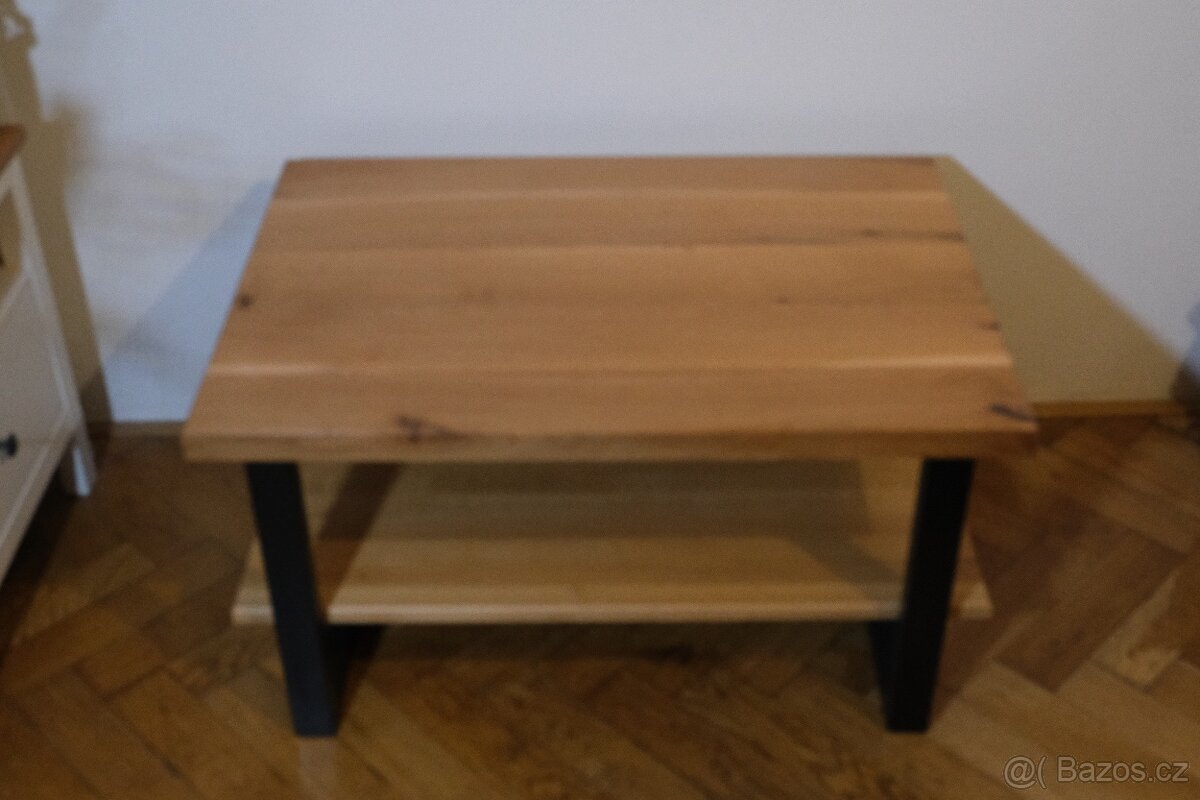 Prodám dubový konferenční stolek s policí. Rozměry 88,5 x 62 cm. Masivní kovové, černé (mat) podnoží. Původní cena 12 000,-. Prodám z důvodu stěhování. Tloušťka horní desky 4 cm. Povrchová úprava bezbarvý matný lak (natural).