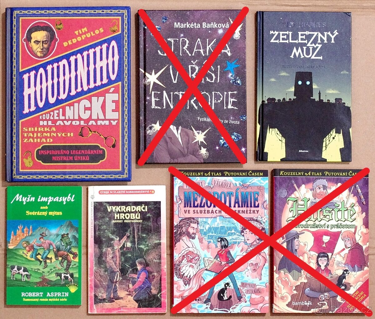 Cena: V textu. Knihy - pro mládež Houdiniho kouzelnické hlavolamy - 100 Kč Straka v říši entropie - PRODÁNO Železný muž - 50 Kč Myšn impasybl aneb Svérázný mýtus - 70 Kč Vykradači hrobů - 150 Kč Kouzelný atlas putování časem – Mezopotámie - PRODÁNO Kouzelný atlas putování časem – Husité - PRODÁNO Vykradači hrobů zachovalá, Železný muž má ťuklé rohy. Zbytek jsou nové. Osobní předání v Brně nebo za 90 Kč Zásilkovna/Balíkovna po platbě předem. Kontakt mailem (to je to okno dole), často bývám mimo signál. PS: SMS není mail