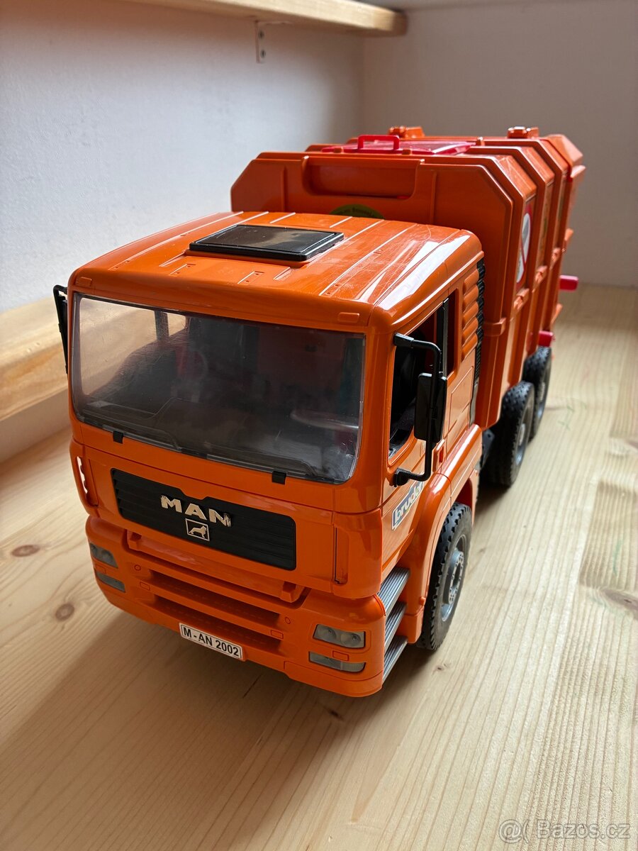 Prodám popelářské auto Bruder MAN. Vše zachovalé, plně funkční.