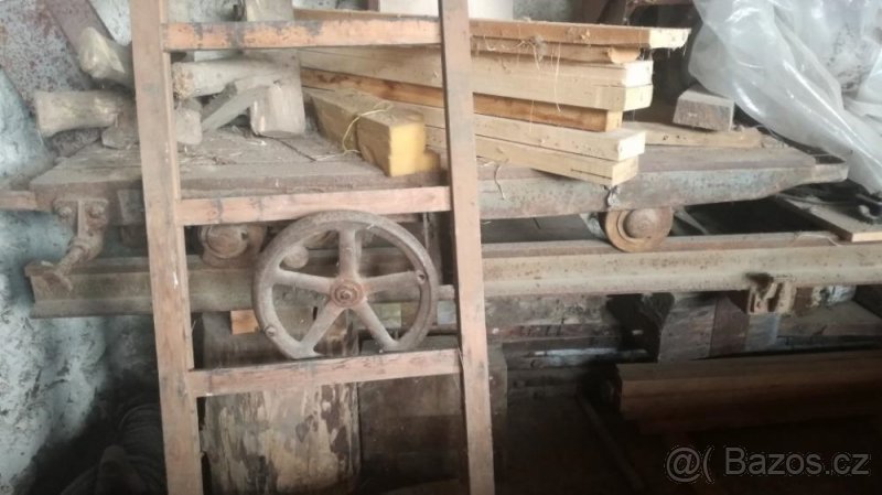 Vozík s pojezdem (na kolejích), velmi přesný, koleje dlouhé 3m